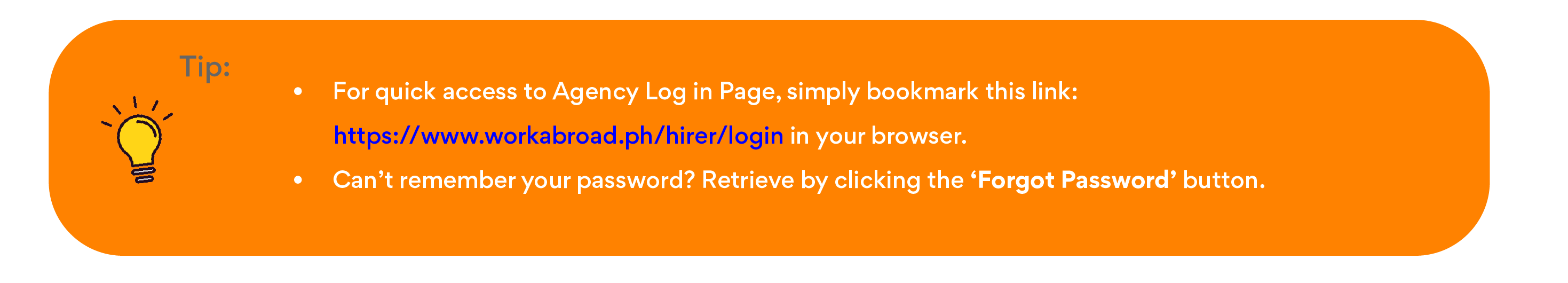 3. On the welcome page, click the “Login to WorkAbroad.ph Account” to sign in and input your WorkAbroad login credentials to start accessing your account.